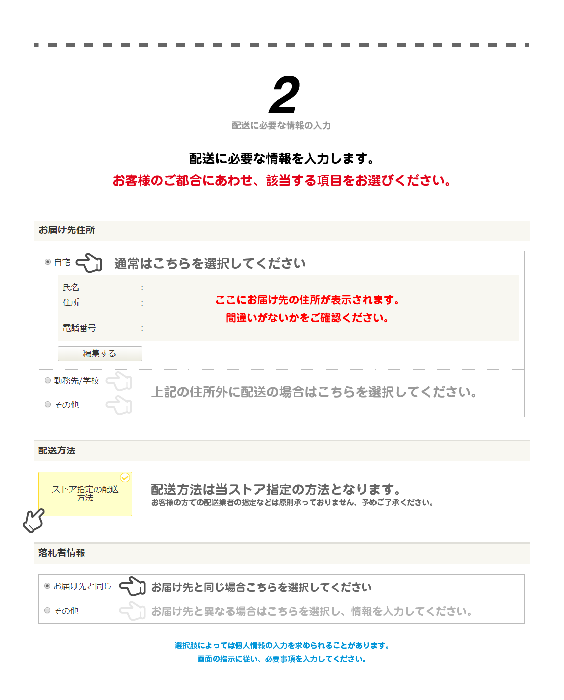 落札した商品の数に合わせ、取引の手順をご確認ください。